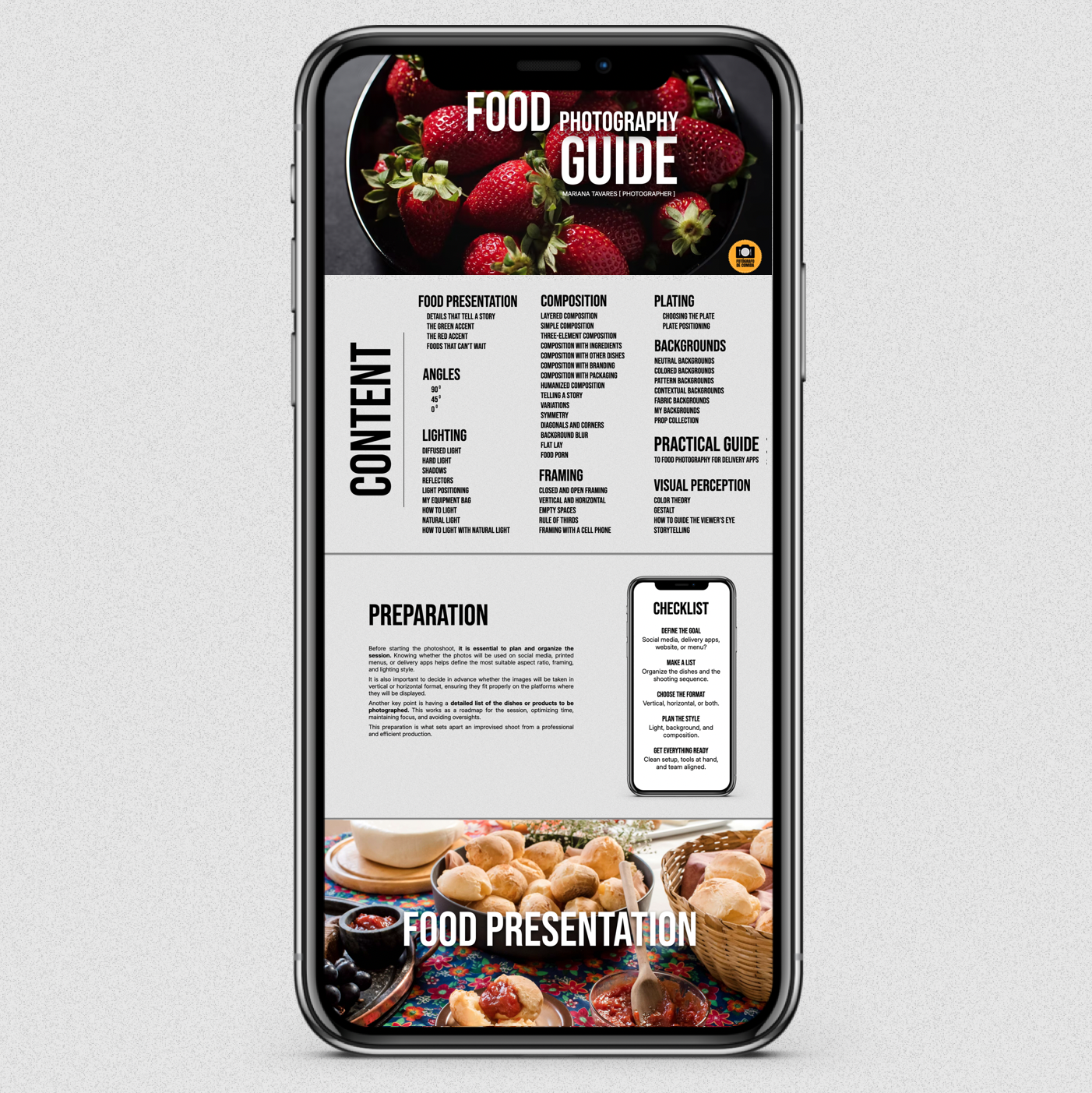With the Food Photography Guide, you’ll learn how to plan your shoots, understand how light enhances food, avoid common mistakes, and create photos that communicate freshness, flavor, and quality. This guide is straight-to-the-point and designed for immediate application by photographers, restaurants, chefs, and food content creators.